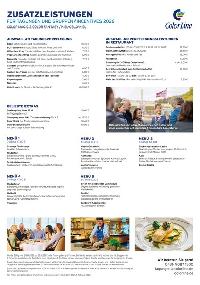 - dazu Kaffee/ Tee, Soft Drinks und Obst